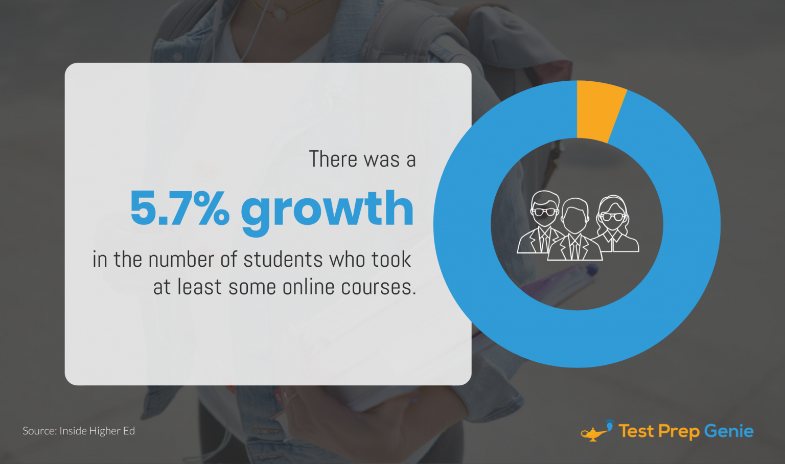 17. There was a 5.7% growth in the number of students who took at least some online courses. (Inside Higher Ed)