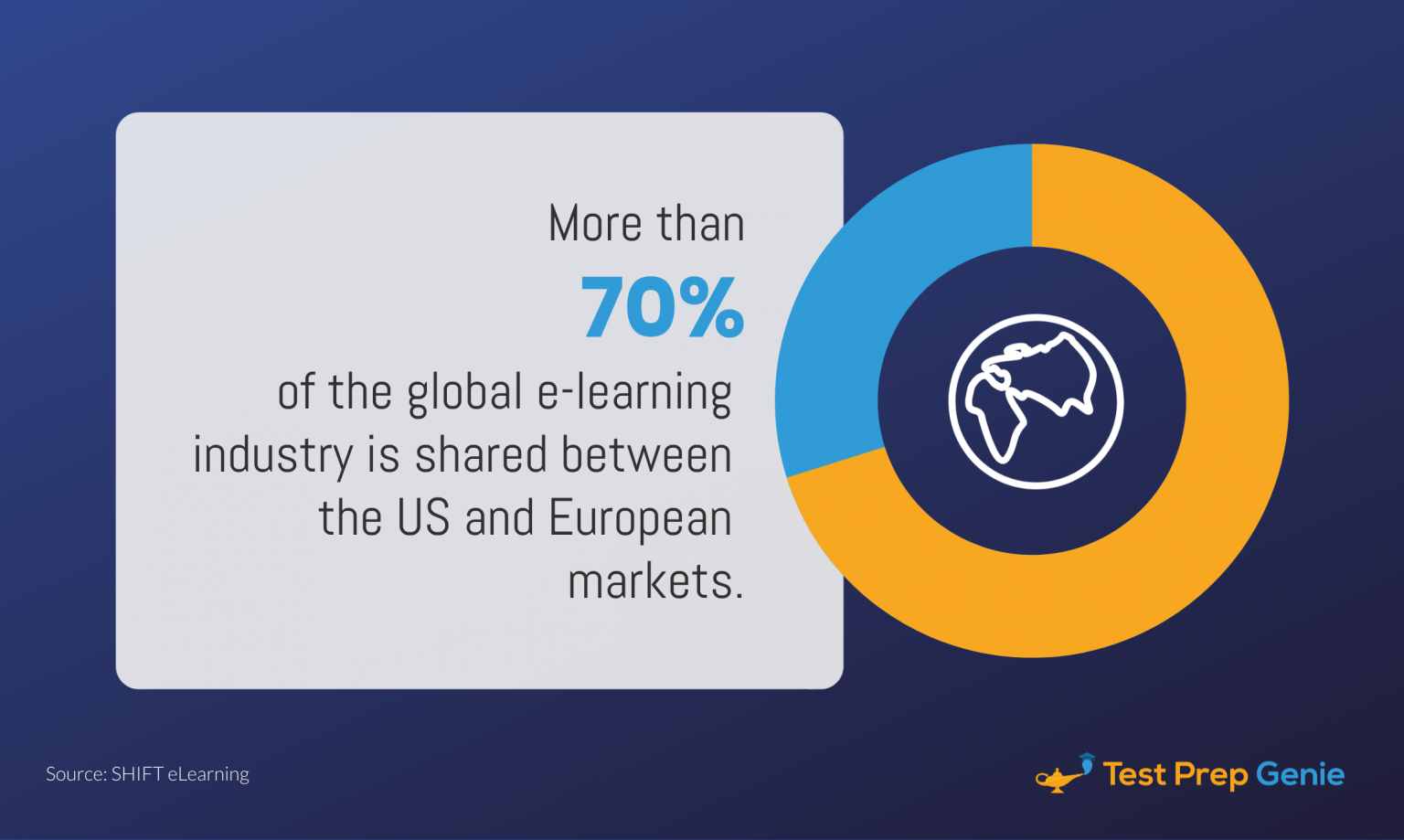 53. More than 70% of the global e-learning industry is shared between the US and European markets. (SHIFT eLearning)